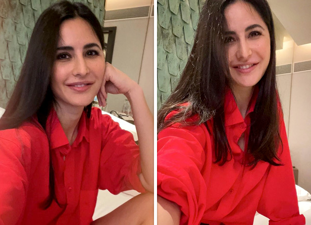 A couple of days ago Katrina had flown down to Indore, Madhya Pradesh to celebrate Lohri with hubby Vicky Kaushal who is shooting with Sara Ali Khan. After giving a glimpse into their Lohri celebration, Katrina has now shared a series of selfies clicked in her hotel room. In the selfies, Katrina can be seen raising the temperature in a red shirt and donning a dazzling smile. Sharing the pictures, Katrina in the caption wrote, "Indoors in เคंเคฆौเคฐ #sundayselfie".